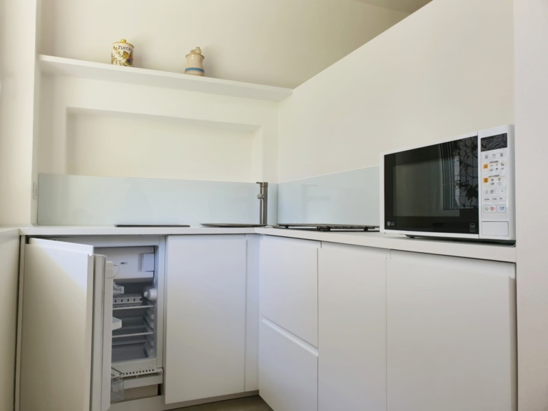 Die Wohnung ist komplett möbliert und bietet dir ein gemütliches Zimmer mit Kochnische und ein Badezimmer mit Dusche. Die Südostausrichtung sorgt für Sonnenschein den ganzen Tag über und lässt dich die Wärme des Südens spüren.