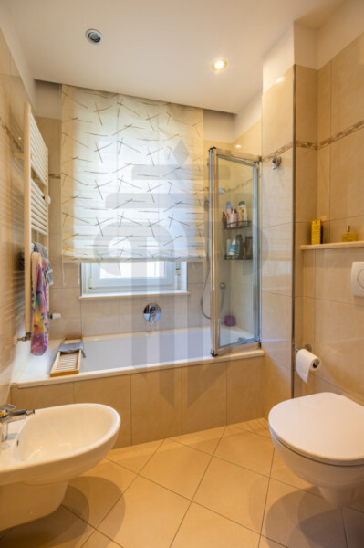 Abgerundet wird das Angebot durch einen großen Keller im Untergeschoss sowie die Möglichkeit, eine Garage – nur drei Gehminuten von der Wohnung entfernt – zum Preis von € 40.000 zu erwerben.