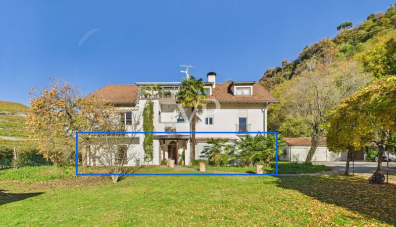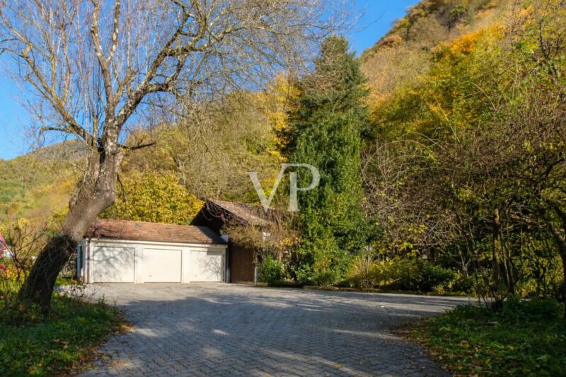 Mitten im Grünen, umgeben von Gärten und Bergen, bietet dieses einzigartige Anwesen Raum, Licht und absolute Ruhe.