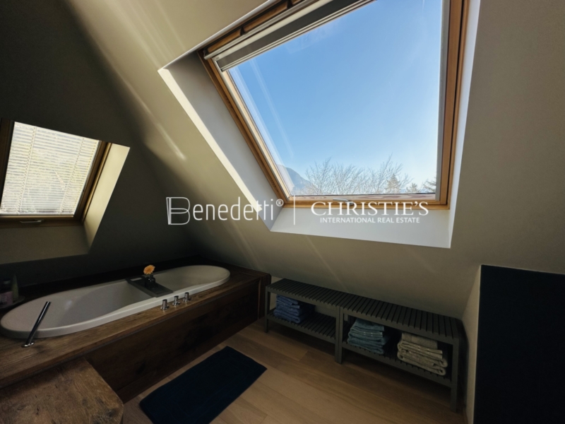 Die zweite Etage präsentiert sich als privater Rückzugsort mit einem charmanten Schlafzimmer, einem exquisiten Hauptbadezimmer und weiteren Räumlichkeiten, die Raum für individuelle Nutzung bieten. Eine großzügige Terrasse mit Esstisch verbindet die Innen- und Außenwelt und schenkt unvergessliche Ausblicke.