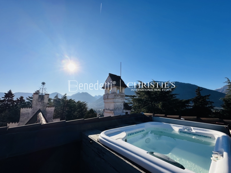 In einem prachtvollen Ansitz aus dem Jahr 1912, eingebettet in die noble Kulisse von Obermais, erwartet Sie eine außergewöhnliche Dachgeschosswohnung. Diese einzigartige Residenz erstreckt sich über drei Ebenen und vereint historischen Charme mit modernstem Wohnkomfort.