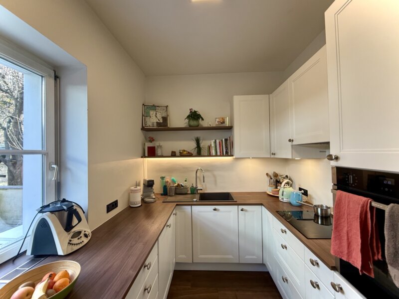 Diese Vierzimmerwohnung im Erdgeschoss einer gepflegten Villa mit nur drei Wohneinheiten ist für Menschen gemacht, die bewusst wohnen: ruhig, privat, überschaubar – und langfristig wertstabil.