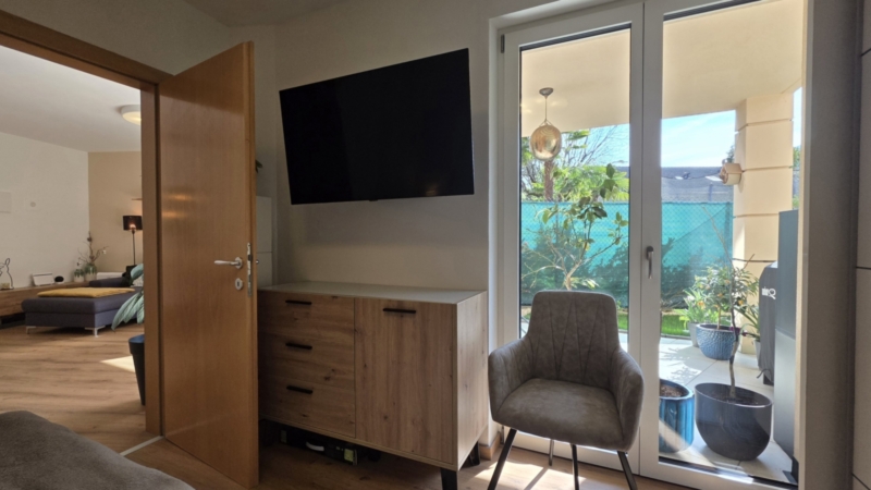 Diese 2 Zimmer Wohnung aus dem Jahr 2006 überzeugt vor allem durch eines: eine spürbare Wohlfühlatmosphäre. Der Wohnbereich öffnet sich zur überdachten Terrasse und in den gemütlichen, privaten Garten und schafft damit einen fließenden Übergang zwischen Innen und Außen. Ein idealer Rückzugsort für entspannte Stunden im Freien.