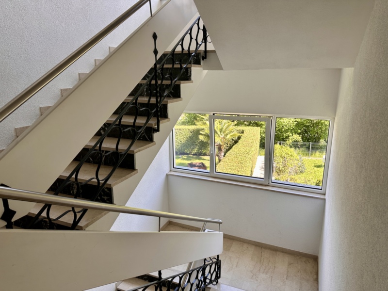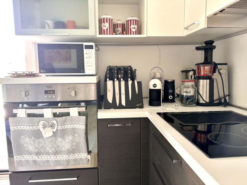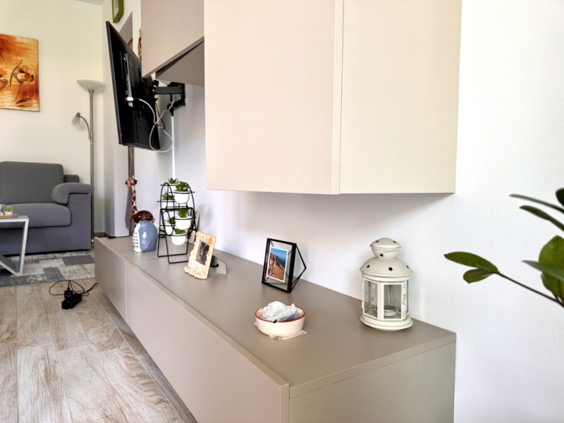 Auch die Details unterstreichen die Qualität dieser Immobilie: doppelt verglaste Fenster mit Holzrahmen innen und Aluminium außen sowie elektrische Rollläden. Die Wohnung wird komplett möbiliert verkauft und ist somit sofort bezugsfertig. Abgerundet wird dieses attraktive Angebot durch eine großzügige Garage mit elektrischem Tor - ein Komfort, der immer mehr an Wert gewinnt.