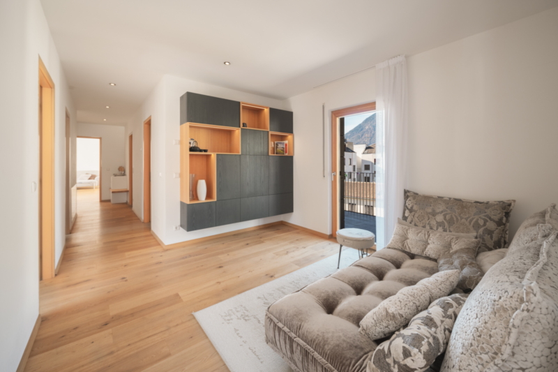 Eingeteilt in Wohnzimmer, Küche, 2 Zimmer, Vorraum, Ankleide, Abstellraum, Bad und WC
