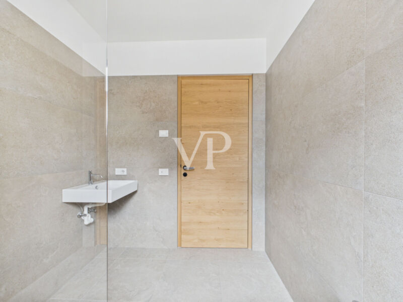 Diese prestigeträchtige Wohnanlage wurde nach dem höchsten Klimahaus-Standard "A+" gebaut und überzeugt durch ihre herausragende Energieeffizienz. Das Objekt befindet sich im Erdgeschoss mit privatem Garten und besteht aus: einer komfortablen Eingangshalle, einem "Wohn"-Esszimmer mit direktem Zugang zum Garten, drei Doppelschlafzimmern (ebenfalls mit direktem Zugang zum Garten), einem Service-Bad und einem Master-Bad mit Fenster. Das Objekt verfügt über eine hervorragende natürliche Belichtung. Die Immobilie ist mit einer zentralen Fußbodenheizung und -kühlung ausgestattet, die mit einer komfortablen Einzelraumtemperaturregelung unabhängig betrieben wird und in allen Räumen eine besondere Wohlfühlatmosphäre bietet. Abgerundet wird das Angebot durch zwei Stellplätze und einen im Preis inbegriffenen Keller.