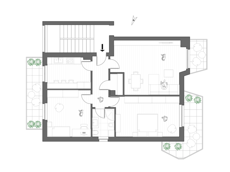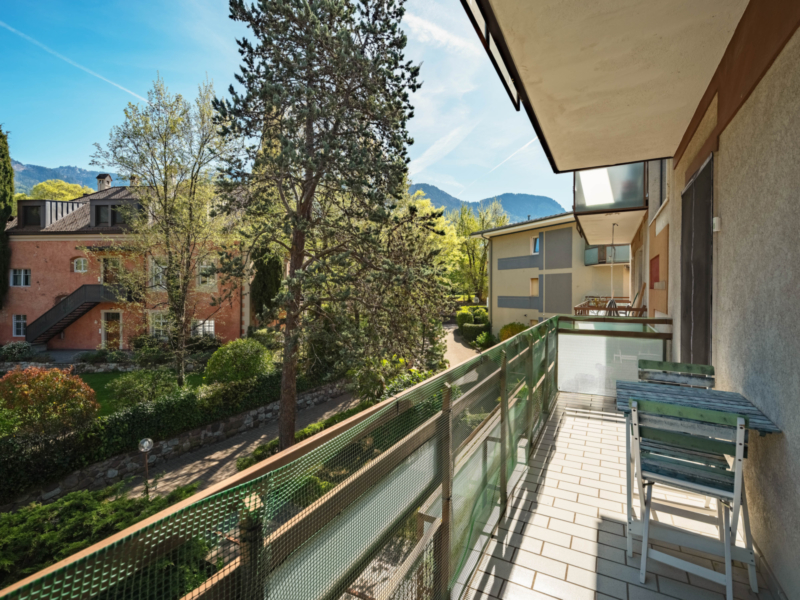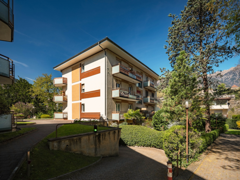 Diese großzügige 3-Zimmerwohnung in begehrter Lage von Meran-Obermais bietet ein ideales Zuhause für alle, die Ruhe und Komfort schätzen. Nur wenige Schritte vom Brunnenplatz und dem Stadtzentrum entfernt, liegt die Wohnung im 1. Obergeschoss eines gepflegten Wohnhauses ohne Aufzug, eingebettet in eine schöne gemeinschaftliche Parkanlage.