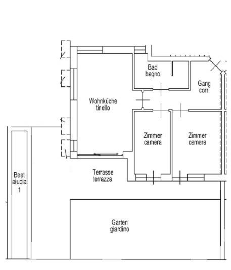 Die Wohnung besteht aus einem Gang, einer Wohnküche, zwei Schlafzimmern, einem Bad, einer Terrasse, einem Garten, einem Stellplatz im Freien, einem Stellplatz in der Garage und einem Keller. Das Haus wurde 2021 fertiggestellt.
