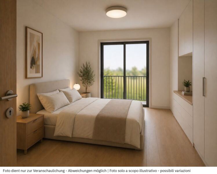 Die Wohnung besteht aus einem offenem Wohn-Essbereich mit integrierter Küche, ein Hauptschlafzimmer sowie ein weiteres Zimmer, das sich ideal als Kinderzimmer, Gästezimmer oder Home-Office eignet, ein modern ausgestattetes Badezimmer und zwei Balkone.