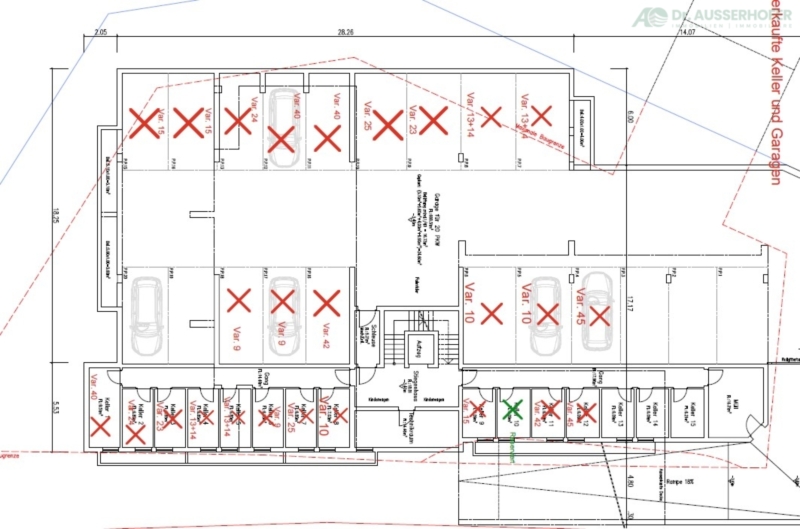 Im Untergeschoss befinden sich ein Kellerraum sowie ein Garagenstellplatz (gegen Aufpreis).