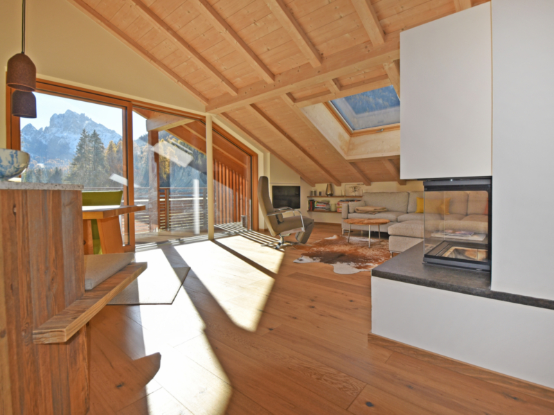 Entdecken Sie eine außergewöhnliche Gelegenheit – eine moderne, luxuriöse Immobilie im kompletten Dachgeschoss eines im Jahr 2020 erbauten Mehrfamilienhauses. Diese exklusive Wohnung besticht durch eine helle und ansprechende Wohnküche mit großen, breiten Fenstern und Dachflächenfenstern, die für ein lichtdurchflutetes Ambiente sorgen. Genießen Sie den atemberaubenden Blick auf die umliegenden Dolomiten und die Natur, die diese Umgebung so einzigartig machen.