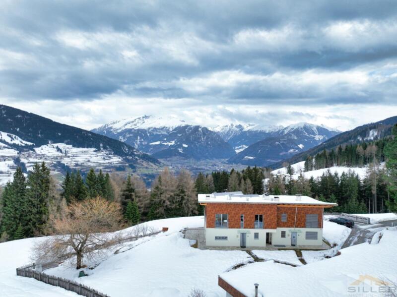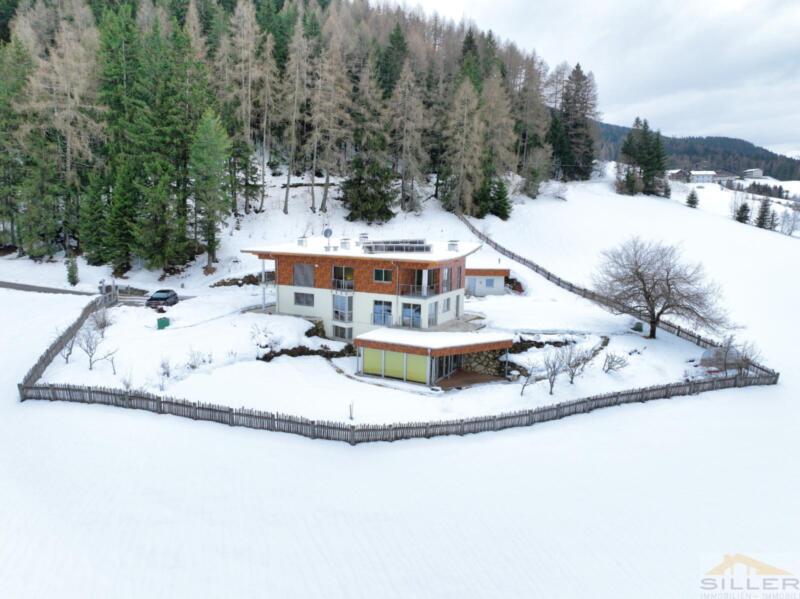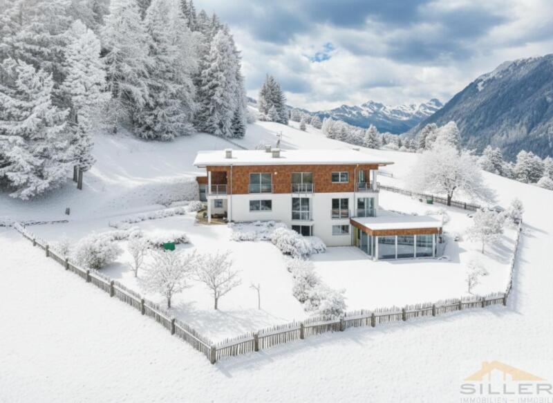 Feriendomizil der Sonderklasse oder perfekt konzipiertes Mehrgenerationenhaus: in dieser vornehmen Villa mit anliegendem Gästehaus inmitten der Natur wird individuelles Wohnen möglich! In schöner Hanglage bettet sich diese Immobilie ganz unauffällig in die Landschaft ein und überzeugt vor allem mit fantastischer Aussicht, viel Licht und guter Erreichbarkeit. Hier erwartet Sie uneingeschränkter Wohngenuss, verteilt auf insgesamt 3 Stockwerke und 2 getrennten Gebäuden.Im Hauptgebäude befindet sich im Erdgeschoss (Nettowohnfläche von ca. 70,82 m²) ein großflächiger, offener Raum, der als Wohnzimmer, Küche und Aussichtspunkt dient; auf derselben Ebene befinden sich ein helles Büro, ein Waschraum sowie ein Gäste-WC. Ein wahrer Hingucker ist das sehr aufwendig konzipierte, runde Stiegenhaus, das mit einen Holzofen, der über zwei Etagen ragt, mit viel Glas und sanften Schwüngen das Zentrum des Hauses bildet und die 3 Stockwerke elegant miteinander verbindet. Der Silberquarzitboden (Pfitscher Stein) ist über das gesamte Stockwerk verlegt und macht die Räumlichkeiten zu einem sehr vornehmen Ambiente.Im Obergeschoss (Nettowohnfläche von ca. 66,84 m²) hinterlässt das Wohnzimmer einen bleibenden Eindruck: mit den vielen Fenstern ist es ausgesprochen hell und auch von hier bzw. der Terrasse kann man den fantastischen Weitblick in Richtung aller Täler des Wipptals genießen; im OG befinden sich weiters 2 Schlafzimmer, eines mit kleinem Balkon und jeweils beide mit begehbarem Kleiderschrank, sowie ein großes Badezimmer mit Fenster. Im gesamten OG wurden hochwertige Holzböden verlegt (kanadisch Ahorn), die Deckenheizung und der Holzofen, der vom EG aus beheizt wird, sorgen für gemütliche Wärme.Im Kellergeschoss hingegen befinden sich zahlreiche weitere Highlights: auf einer Gesamtfläche von fast 161 m² gibt es hier 2 Gästezimmer, ein Badezimmer, 3 großzügige Kellerräume sowie ein echter Wellnessbereich mit Sauna, Whirlwanne, einem weiteren WC und einer großen Dusche. Von diesem Bereich aus gelangt man außerdem in einen rund 38 m² großen, lichtdurchfluteten Wintergarten, der auf 3 Seiten verglast und direkt über eine Terrasse mit dem Garten verbunden ist. Sie ahnen bereits, wie die Winterabende hier so verlaufen: erst gemütlicher Relax im Jacuzzi, danach Schwitzen im heißen Saunabad, direkt von dort ein kühner Sprung in den eiskalten Schnee und abschließend Entspannung im Ruhebereich des Wintergartens - und dann nochmal von vorne!Das Gästehaus ist direkt am Haupthaus angebunden und ist ebenso auf 3 Stockwerken aufgeteilt. Hier bieten Sie Ihren Gästen Komfort der Sonderklasse, mit einem Erdgeschoss (Nettowohnfläche von ca. 37,73 m²) mit hellem Wohnzimmer mit Holzofen, einer großzügigen Wohnküche und einem Gäste-WC. Das Erdgeschoss ist mit einer Terrasse und eigenem Garten von ca. 386 m² verbunden. Das Obergeschoss (Nettowohnfläche von ca. 38,6 m²) teilt sich in 2 großzügige Schlafzimmer, eines davon mit großzügiger Terrasse und ein Badezimmer mit Fenster auf. Wie im Hauptgebäude wurden auch hier viele und große Fenster eingeplant. Weitere 3 Kellerräume im Untergeschoss (Nettowohnfläche von ca. 43,49 m²) von denen ein Raum als Waschraum dient, vervollständigen das Zubehör im Gästehaus.Die beiden Immobilien sind unterirdisch durch den gemeinschaftlichen Heizraum (von ca. 29,78 m²) verbunden, der mit modernster Technik ausgestattet ist und wo sich Pelletstank, Heiz- und Staubsaugeranlage befinden. Die gesamte Immobilie wird von einem schönen Gartengrundstück umgeben und hat insgesamt eine Fläche von ca. 3.800 m², ist mit zahlreichen Obstbäumen bepflanzt, hat überdies einen Teich und sogar eine eigene Wasserquelle, die grundbücherlich als Teil des Eigentums eingetragen ist - umzäunt wird das Anwesen von einem aufwändig geflochtenen Zaun in traditioneller Bauart.Die Garage, die statisch sehr aufwändig und dadurch ohne tragende (und fürs Parken störende) Säulen erbaut wurde, bietet Platz für 6 Autos und ist mit einer Werkstatt/Abstellraum von ca. 45 m² verbunden, wo sich ein weiteres WC und ein Keller befinden.Das Haus wurde als Niedrigenergiehaus im Standard "Klimahaus A" erbaut und wird durch eine moderne Pelletsheizung beheizt, Solarpaneele auf dem begrünten Flachdach sorgen für die Warmwasseraufbereitung. Überdies wurde der Hauptteil nach den Lehren energetischen Bauens errichtet: Räume und Stiegenhaus wurden den Energiepunkten und Leylines gemäß angeordnet, alle Eisenteile sind geerdet, die besondere Harmonie in all den Lebensräumen ist dadurch überall spürbar!Weitere Details über Lage, Ausstattung und Konditionen bieten wir jederzeit in einem persönlichen Gespräch an - wir freuen uns auf Ihre Kontaktaufnahme.