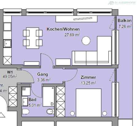 Diese gut eingeteilte Zweizimmerwohnung befindet sich im letzten Stock eines Kondominiums in zentraler Lage von Reischach. Die Wohnung verfügt über einen großzügigen Balkon mit schönem Blick ins Grüne und besteht aus einem Vorraum, einem Wohnzimmer mit Kochnische, einem Schlafzimmer und einer Dusche/WC.