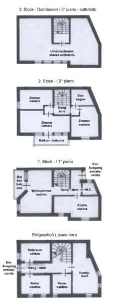Großzügiges Eckreihenhaus in schöner und ruhigen Lage gelegen, Zentrumsnah von Sarnthein. Das Reihenhaus wurde saniert und ist bezugsbereit. Eine neue Küche mit Geräten ist dabei. Das Reihenhaus hat eine Nettofläche von ca. 192 qm und ist in folgenden Etagen aufgeteilt: Erdgeschoß/Kellerbereich ca. 40 qm; 1. Stock ca. 47 qm; 2. Stock ca. 54 qm; Dachboden ca. 51 qm. Ideal für Familien. Eine Tiefgarage gehört auch dazu. Autostellplätze sind im allgemeinen Innenhof vorhanden sowie Gemeinschaftsgärten. Die Heizung bzw. Warmwasser läuft autonom und wird vom Heizwerk Sarnthein betätigt