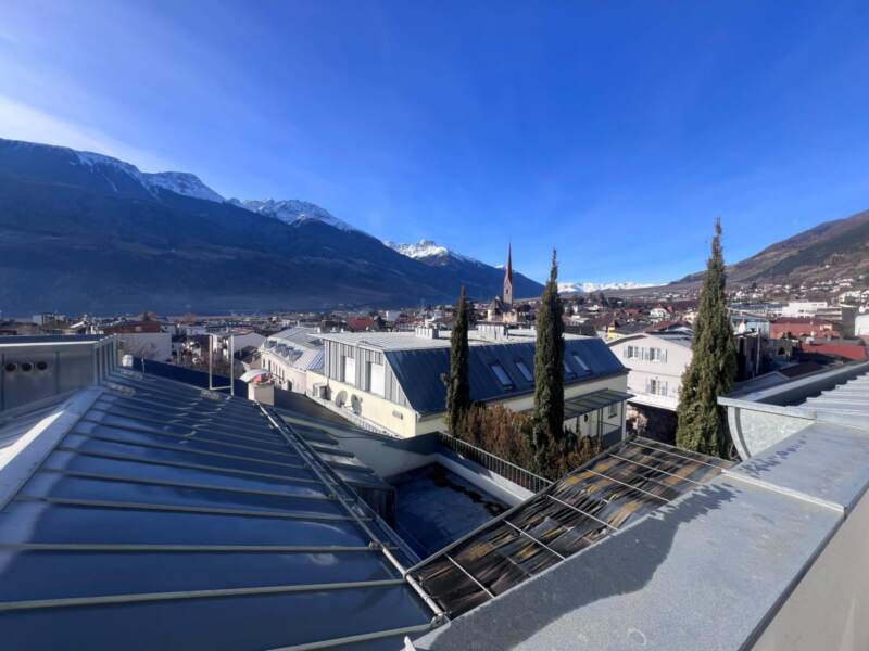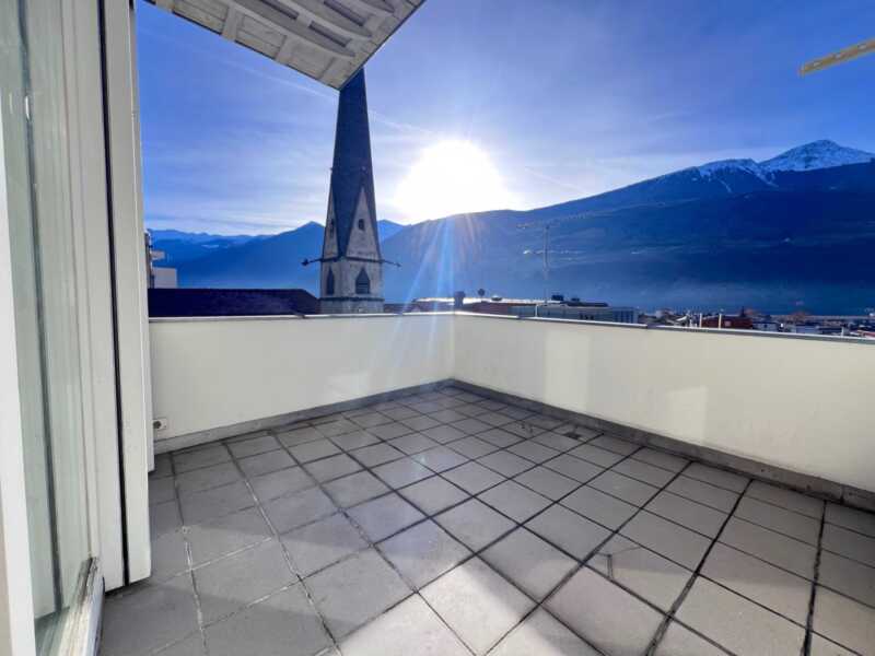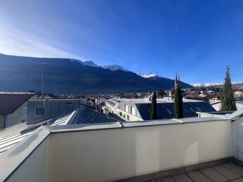 Im Zentrum von Schlanders befindet sich diese sonnige Dachgeschosswohnung im 3. Stock eines Wohnhauses aus dem Jahr 1991. Die Immobilie überzeugt durch eine klare Raumaufteilung mit einem großzügigen Wohnbereich und Zugang zur sonnigen Terrasse, von der sich ein schöner Ausblick über die Dächer von Schlanders eröffnet. Eine separate Küche, zwei Schlafzimmer sowie ein großes Badezimmer mit Fenster bieten ausreichend Platz und Funktionalität. Ergänzt wird das Angebot durch einen Autostellplatz in der Garage sowie einen angrenzenden Kellerraum. Dank der zentralen Lage sind Geschäfte, Schulen und weitere Einrichtungen bequem zu Fuß erreichbar.