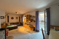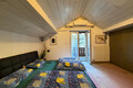 Das Obergeschoss umfasst zwei Schlafzimmer, eine Küche, ein Wohnzimmer, ein Badezimmer sowie eine Terrasse.