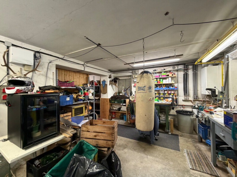 Im Erdgeschoss befindet sich ein großzügiger Kellerbereich mit Garage, der neben den Stellflächen auch zusätzliche Nutzungsmöglichkeiten (z. B. Hobby-, Lager- oder Technikräume) bietet.