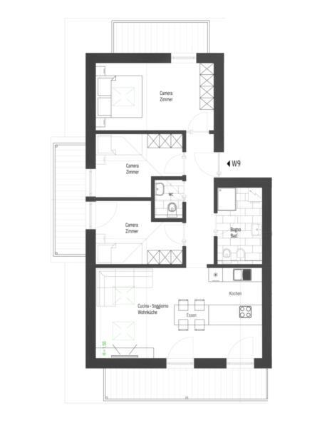 Im 2. Obergeschoss der Residence Schacher – einem stilvollen Neubauprojekt mit nur neun exklusiven Wohneinheiten – erwartet Sie eine großzügige Wohnung, die modernen Wohnkomfort mit alpinem Flair vereint.