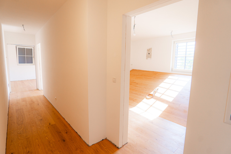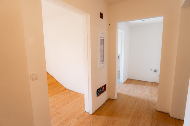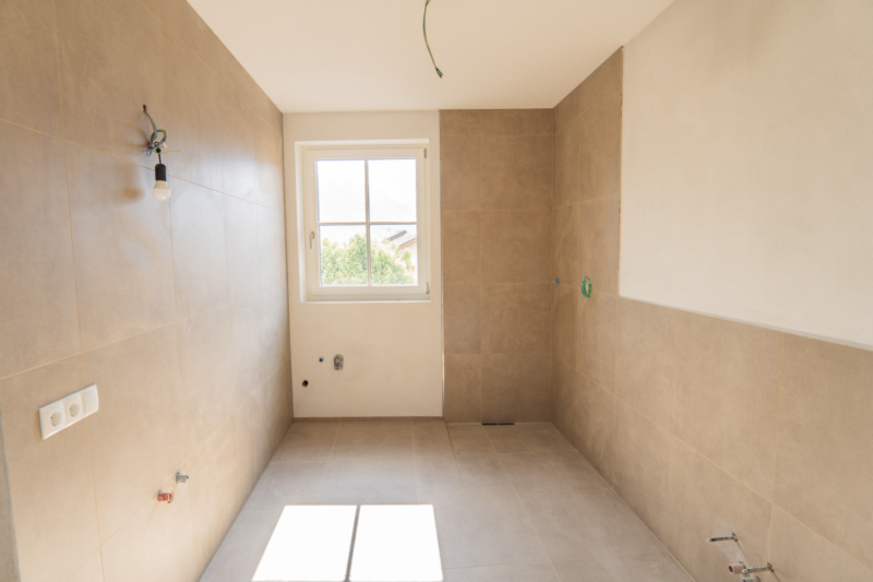 großzügiges Badezimmer, zwei Schlafzimmer, Eingangsbereich, Wohnküche und ein Keller im Kellergeschoss.