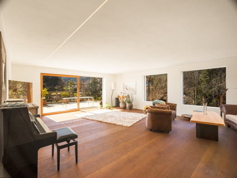 Der Außenbereich besticht durch seine Großzügigkeit und Vielfalt: Eine weitläufige Terrasse, ein beeindruckender Infinity-Pool mit Blick über das Tal, ein gepflegter Garten, Whirlpool und Sauna schaffen eine private Wellness-Oase, die Entspannung und Exklusivität perfekt miteinander verbindet.