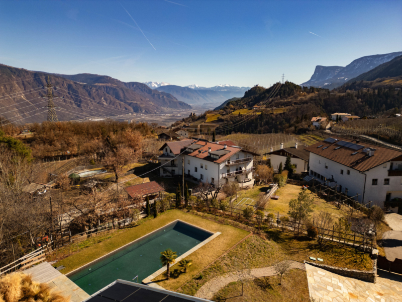 Diese außergewöhnliche Villa beeindruckt durch ihre spektakuläre Lage mit unvergleichlichem Panoramablick über das Etschtal und die umliegende Berglandschaft. Die erhöhte Position bietet absolute Privatsphäre, Ruhe und ein unvergleichliches Gefühl von Freiheit inmitten einer atemberaubenden Naturlandschaft.