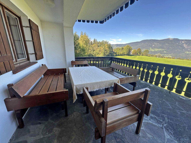 Im Erdgeschoss befinden sich neben dem einladenden Wohnbereich auch eine Küche, ein Zimmer sowie ein Abstellraum. Vom Wohnbereich aus gelangt man auf die große Sonnenterrasse, die den Blick in die umliegende Landschaft öffnet. Ein WC im Erdgeschoss ergänzt die praktische Raumaufteilung. Das 1. Obergeschoss beherbergt vier helle Schlafzimmer, ein Badezimmer sowie ein Balkon mit Südausrichtung. Der traditionelle Kachelofen im Wohnbereich sorgt für eine behagliche Atmosphäre und unterstreicht den authentischen Südtiroler Wohnstil.