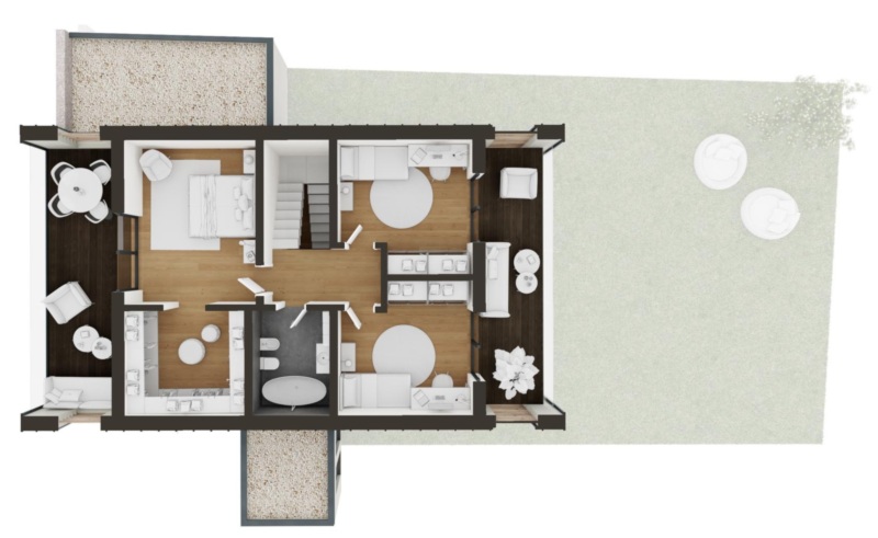 Die beiden Villas erstrecken sich über zwei Etagen und bieten mit vier geräumigen Schlafzimmern sowie zwei großzügigen Badezimmern viel Platz für Familien oder alle, die Wert auf Freiraum legen. Helle Räume, ein funktionales Raumkonzept und eine moderne Ausstattung machen diese Häuser besonders attraktiv.