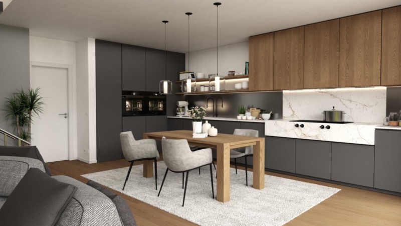 Ergänzt werden die Villas durch zwei 4-Zimmer Wohnungen: Eine liegt im Erdgeschoss, die andere im ersten Stock. Beide Wohnungen verfügen über drei Schlafzimmer und zwei große Badezimmer – ideal für Paare mit Kindern oder für alle, die eine komfortable und zugleich praktische Wohnlösung suchen.