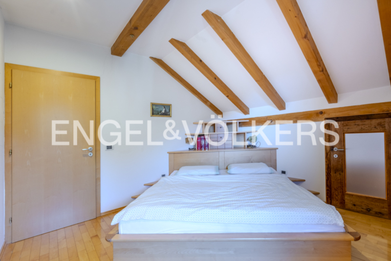 Das Dorf Welschnofen auf 1.182 Metern Höhe liegt eingebettet zwischen den majestätischen Gebirgszügen des Latemar und des Rosengartens – eine Kulisse, die zu jeder Jahreszeit beeindruckt. Die Immobilie selbst befindet sich in einer ruhigen Wohngegend am Ortsrand und bietet durch ihre Ausrichtung einen freien Blick auf die sanfte Hügellandschaft.