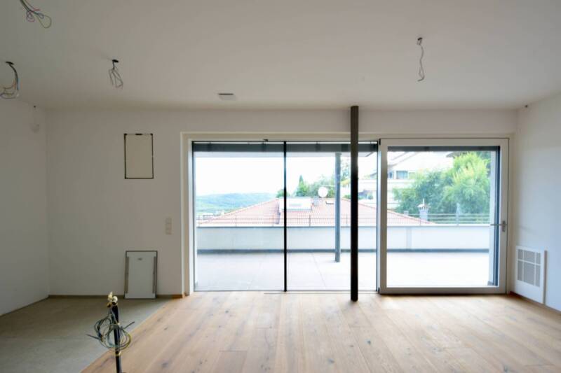 L'appartamento è dotato di pavimenti in legno di alta qualità nella zona giorno e piastrelle facili da pulire nei bagni. Le tapparelle elettriche, il riscaldamento a pavimento e un sistema di ventilazione decentralizzato garantiscono il massimo comfort. Il sistema di riscaldamento efficiente è supportato da una pompa di calore e da un impianto fotovoltaico per un'efficienza energetica ottimale.