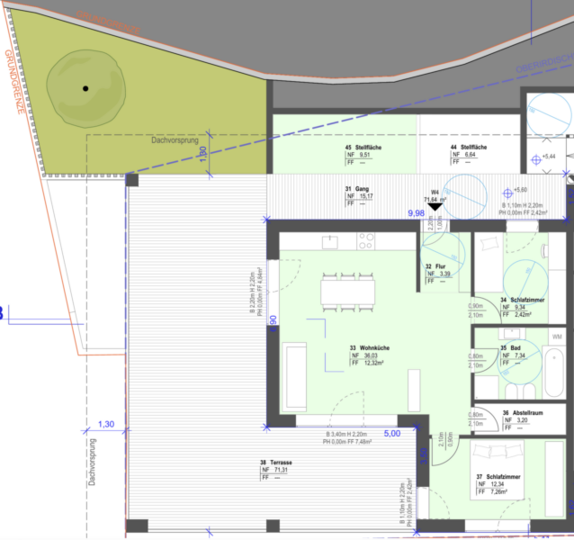 L'appartamento luminoso, che può essere progettato secondo i vostri desideri, comprende anche una terrazza di 71 m², un giardino e una cantina adiacente.