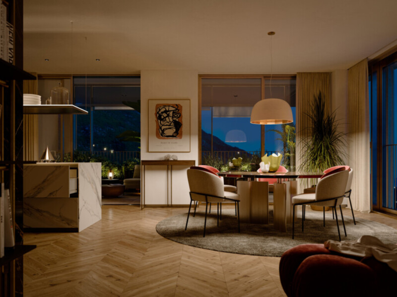 Le ampie vetrate panoramiche spiccano e conquistano a prima vista: da qui la vista sulla città di Bolzano e sul parco circostante è unica. Il design moderno e identitario, composto da materiali eco-friendly, si integra alla perfezione con il territorio: Materiali e finiture che rispettano appieno il valore della sostenibilità. La creatività artigiana Made in Italy si mescola sapientemente a uno stile minimal, eclettico e graffiante.