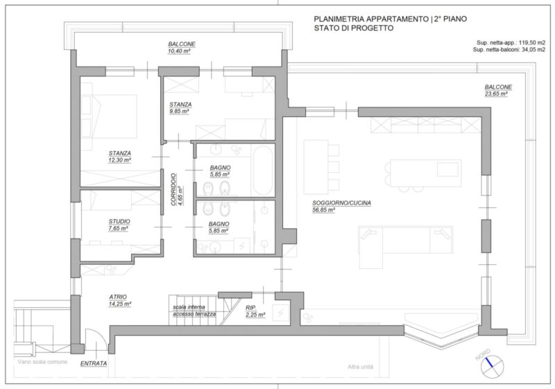 Proponiamo in vendita esclusiva in via Fago, in posizione interna, tranquilla e circondata dal verde, un appartamento in fase di ristrutturazione, al secondo e ultimo piano, collegato internamente alla terrazza privata sull'attico.