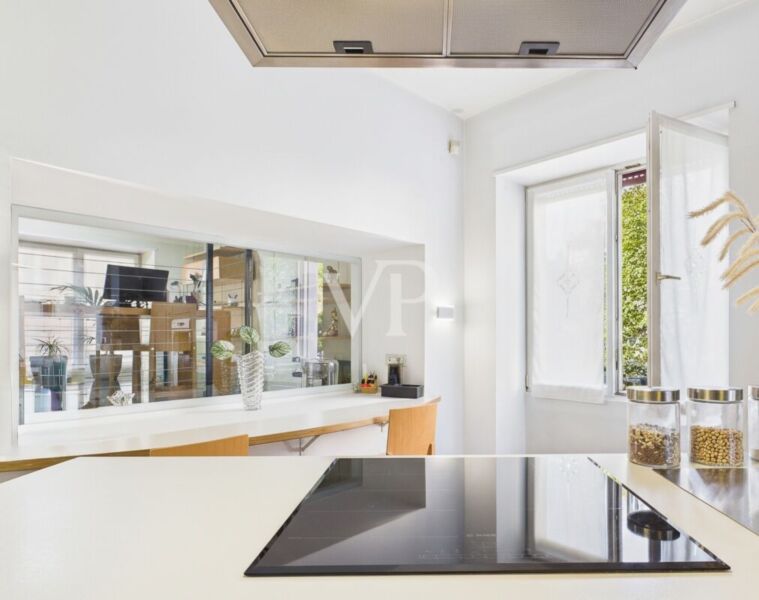 La cucina è separata e offre spazio a sufficienza per sviluppare la propria creatività. Una spaziosa camere da letto, mentre un'ulteriore stanza può essere utilizzata come ufficio o spazio di lavoro. L'ampio bagno è luminoso e modernamente attrezzato, completato da un pratico WC per gli ospiti, doccia e vasca. Tapparelle elettriche e impianto luminoso dimerabile. Cantina.