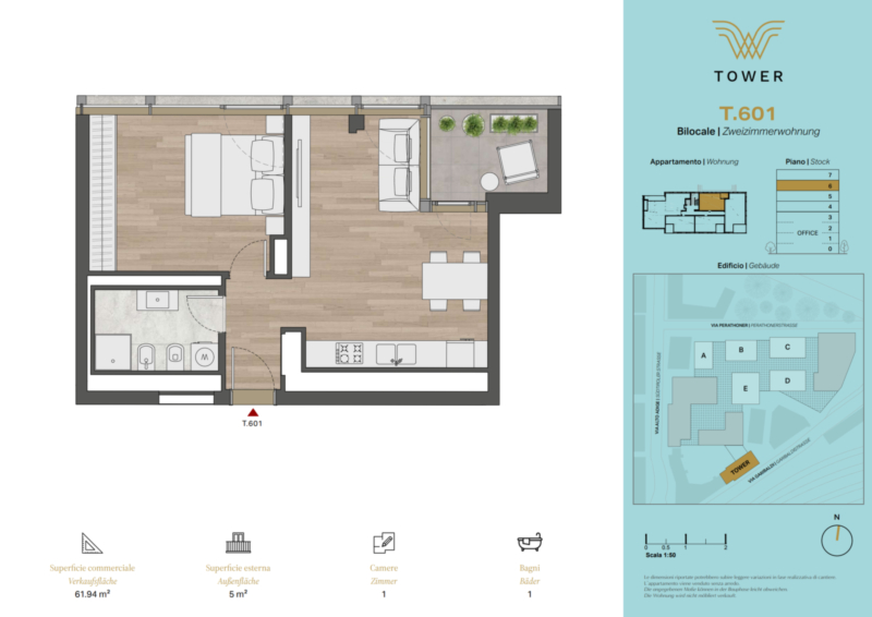 Gli appartamenti del WaltherPark rispondono a esigenze diverse: uno, due, tre o quattro vani – sono disponibili soluzioni abitative per famiglie, coppie e single, inclusi esclusivi attici.