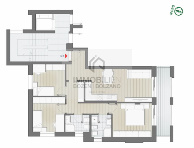 A Gries si trova questo moderno appartamento di nuova costruzione, situato al 3° piano di un elegante edificio residenziale in classe energetica A. L’unità dispone di una superficie abitabile di ca. 95,25 mq ed è caratterizzata da un’ottimale esposizione nord-sud-ovest, che garantisce ambienti luminosi e accoglienti. La distribuzione interna, studiata con cura, comprende un ingresso, un ampio soggiorno con angolo cottura, tre camere da letto, due bagni, un disimpegno e un balcone. Una cantina è inclusa nel prezzo. L’immobile si distingue per l’elevata qualità costruttiva, l’efficienza energetica e la favorevole esposizione.
