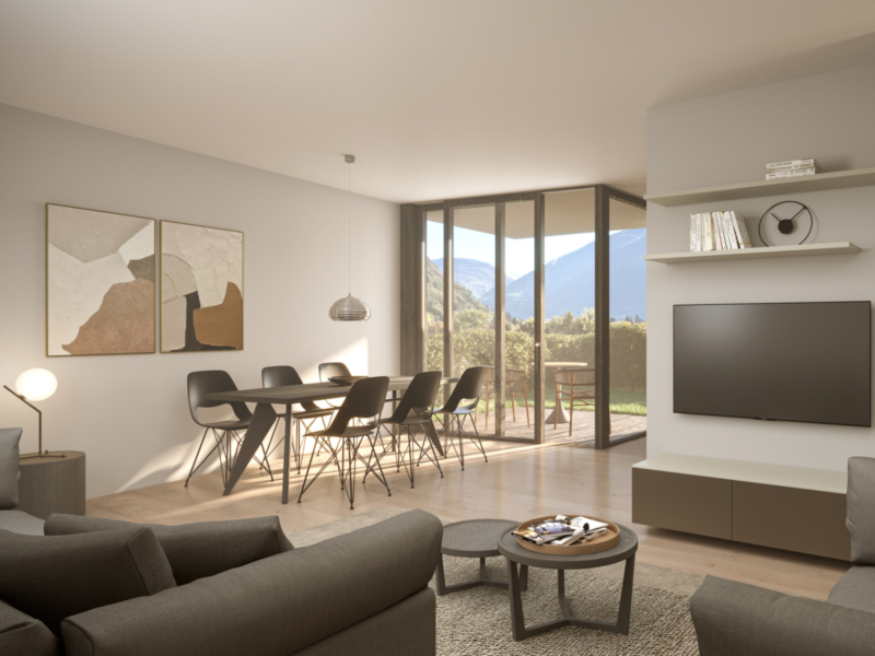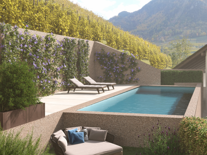 Il progetto comprende ampi appartamenti di tre, quattro e cinque locali, che offrono un elevato comfort abitativo e uno standard di vita superiore. Ogni unità dispone di spazi esterni privati come giardino o terrazza. Un ulteriore punto di forza è l’area comune curata con piscina, situata direttamente tra i vigneti, a disposizione di tutti i residenti – un vero luogo di relax e tranquillità.