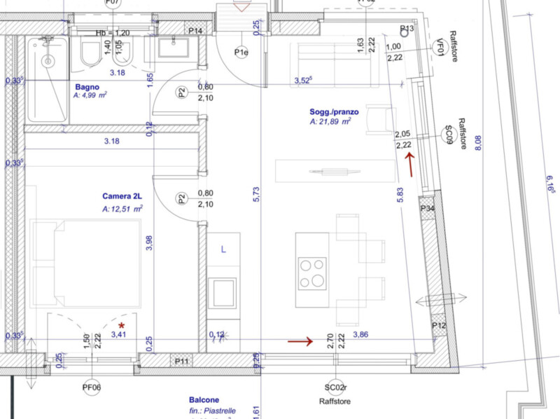 L'appartamento si trova al secondo piano ed è composto da ingresso, soggiorno con cucina, stanza da letto, bagno finestrato e terrazza.