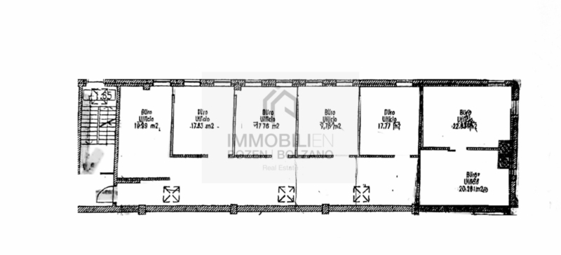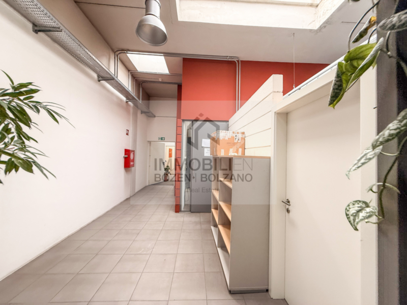 Affittasi ampio ufficio a Bolzano Sud. L' immobile si trova al primo piano e si estende su una superficie di ca. 185 mq. L’immobile si presenta in buone condizioni ed è composto da 7 uffici. I vari uffici sono accessibili attraverso un corridoio. Il bagno è in uso comune con altri uffici. 2 posti auto sono a pagamento extra disponibili. L’immobile è perfettamente raggiungibile dall’Autostrada.
