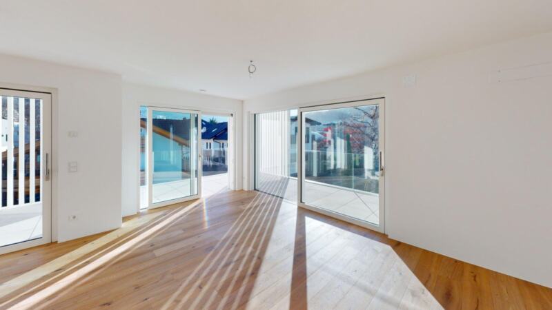 Questo attico al secondo piano è composto da ingresso, soggiorno e zona pranzo, tre camere da letto e due bagni. Completano l'offerta una terrazza e una cantina. Sono disponibili garage al piano interrato a un costo aggiuntivo.