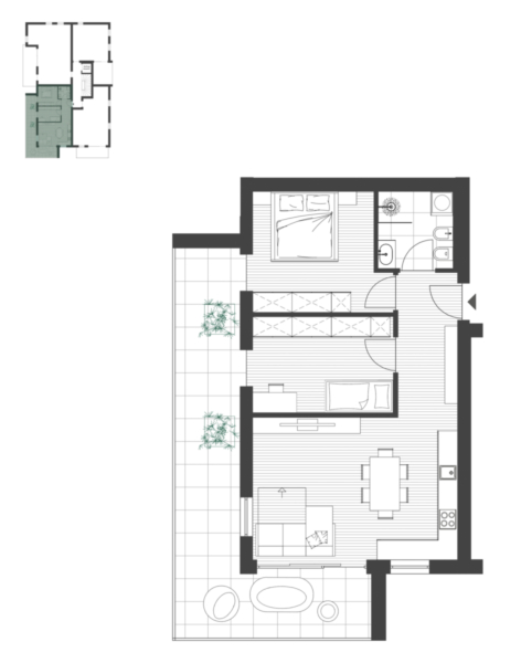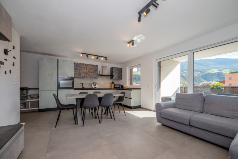 L‘appartamento, come nuovo, affascina con una disposizione intelligente degli spazi: due camere da letto luminose offrono un rifugio, mentre l‘ampia cucina abitabile diventa il cuore della vita quotidiana. Il bagno moderno completa il concetto armonioso.
