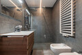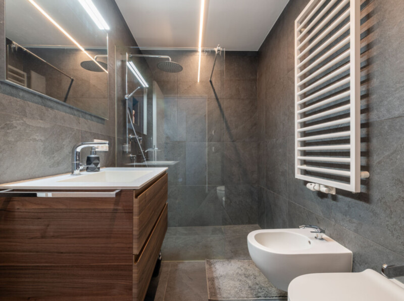 L'appartamento è dotato di riscaldamento a pavimento a basse temperature, il clima interno può essere regolato separatamente per mezzo di un termostato da ambiente, che consente di programmare tempi e gradi di riscaldamento su base giornaliera e settimanale. Camera da letto, soggiorno con cucina e bagno sono configurabili singolarmente.