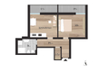 L'appartamento si trova all'ultimo piano ed è composto da un ampio ingresso, una cucina-soggiorno, una camera da letto, un bagno, un ripostiglio e due balconi. L'appartamento dispone anche di una cantina e di un garage.