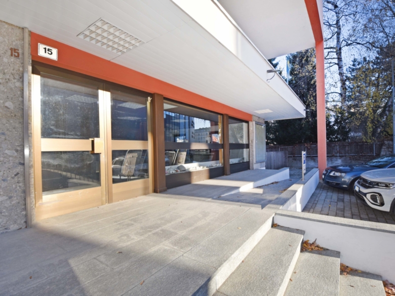 Spazioso locale in affitto vicino al municipio di Brunico. I locali commerciali al piano terra offrono molto spazio e dispongono anche di un bagno aggiuntivo e un Ripostiglio e di posti auto proprio davanti alla porta d'ingresso.