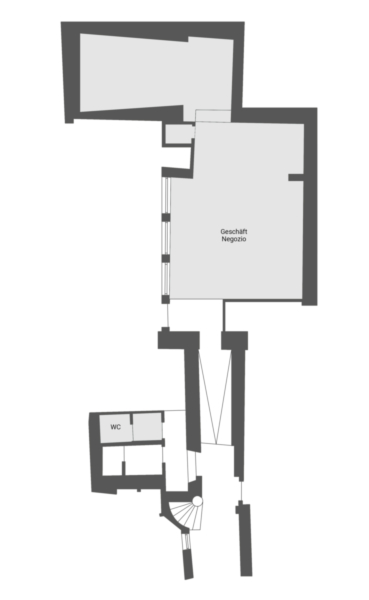 Ampio locale nella città alta di Brunico in affitto. Il locale commerciale al piano terra della zona pedonale offre spazio sufficiente e dispone anche di un WC.
