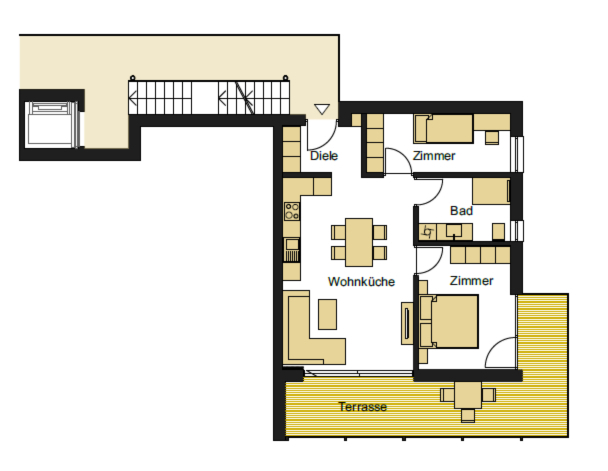 L'appartamento n. 5 si trova al 1° piano del Residence "Sonnenberg" ed è composto da 2 camere da letto, bagno e cucina abitabile, per un totale di circa 75,40 m².