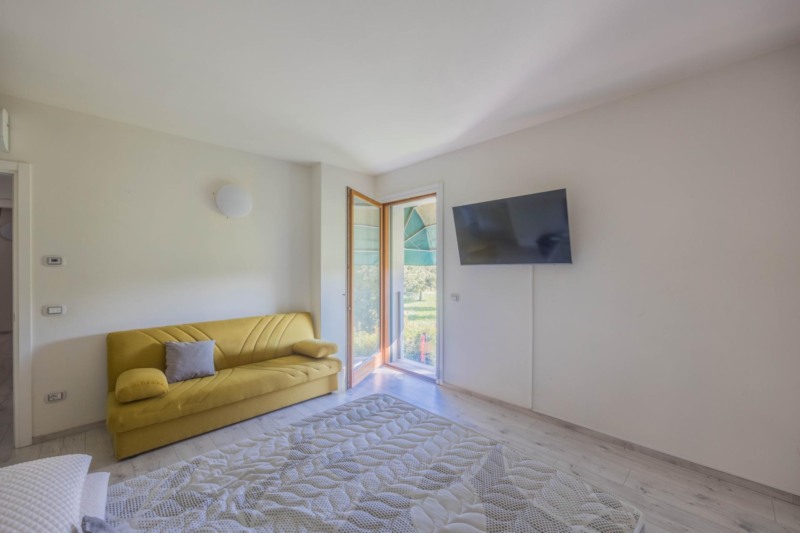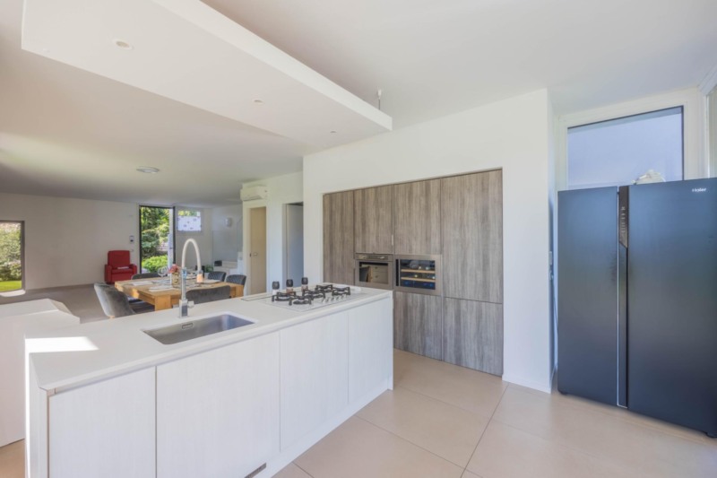 Anche il seminterrato mostra il lato pratico della casa: qui si trova una seconda cucina, utilizzata come taverna, perfetta per feste, hobby o incontri intimi in compagnia. Le finiture sono di alta qualità e un impianto fotovoltaico garantisce un approvvigionamento energetico sostenibile.