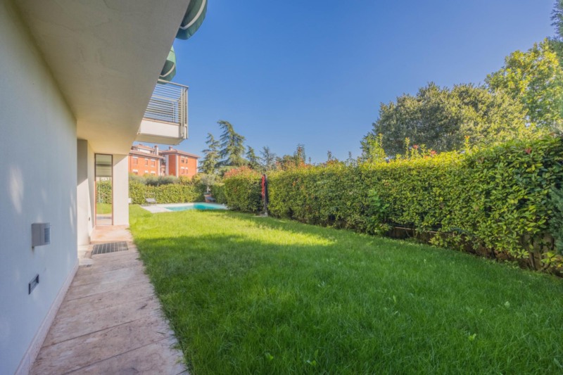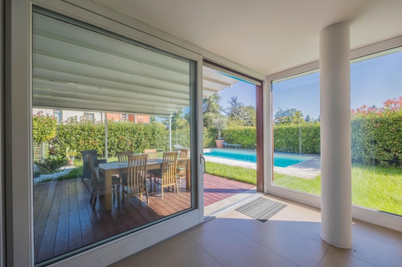 Questa moderna villetta a schiera angolare convince per la sua costruzione di alta qualità e la disposizione degli spazi ben studiata, che unisce perfettamente comfort abitativo e stile. Un punto di forza particolare è la piscina privata che, insieme all'ampio giardino ben curato, offre un rifugio ideale per trascorrere ore di relax all'aperto. L'ampia terrazza è perfetta per trascorrere piacevoli serate estive e organizzare grigliate.