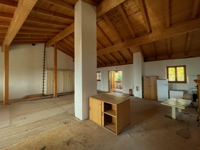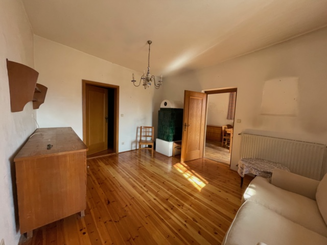 L'unità abitativa esistente offre una solida base per un insediamento immediato o per una ristrutturazione personalizzata. È composta da una scala di accesso con balcone, ingresso, cucina, soggiorno con stufa in maiolica, camera da letto e un ripostiglio. La casa è completata da ampie cantine a volta che offrono abbondante spazio di stoccaggio o spazio per hobby..