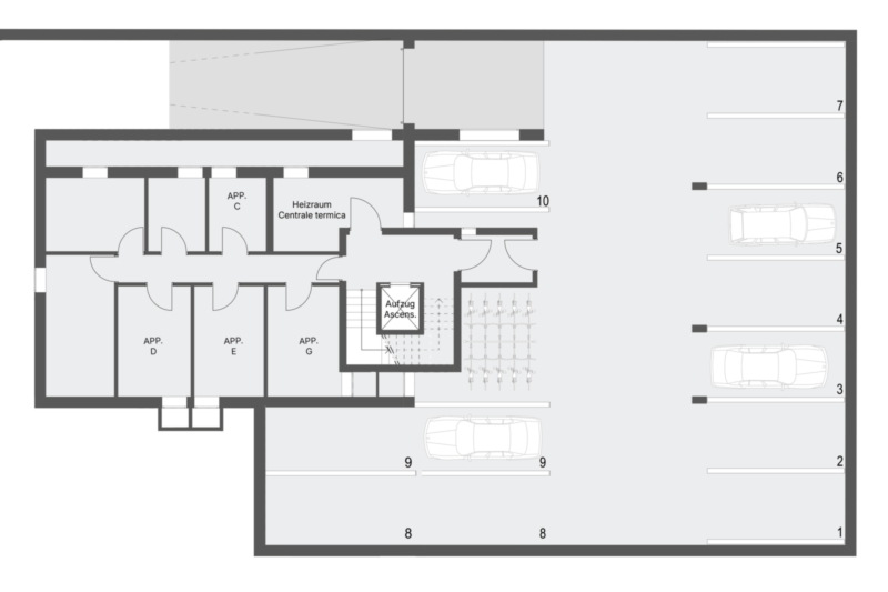 I posti auto in garage nel seminterrato possono essere acquistati separatamente (+35.000 euro).